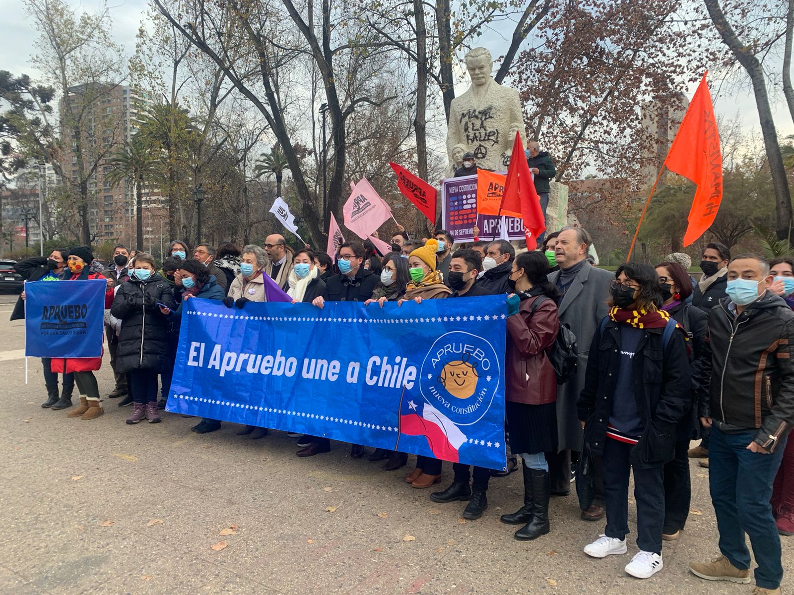 La actividad del lanzamiento de campaña por el «Apruebo» tenía por objetivo realizar una “A” gigante entre las personas asistentes al evento. Hasta el Paseo Bulnes con Parque Almagro llegaron los vicepresidentes del Partido Socialista (PS) Arturo Barrios y Fanny Pollarolo, junto a exconvencionales Beatriz Sánchez (FA), Marcos Barraza (PC), Fernando Atria (FA) y Giovanna Grandón (Coordinadora Plurinacional). También asistió la diputada del distrito 10 Emilia Schneider (Comunes) y el diputado del distrito 6 Diego Ibáñez (Convergencia Social).