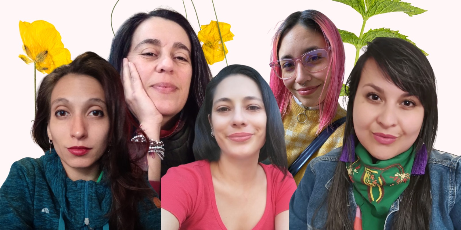 * Camila Olmos, Elisa Franco, Sofía Rodríguez, Ana Paula Sánchez y Pamela Valenzuela son las Vocerías 2023-2024 de la Coordinadora Feminista 8M Santiago.