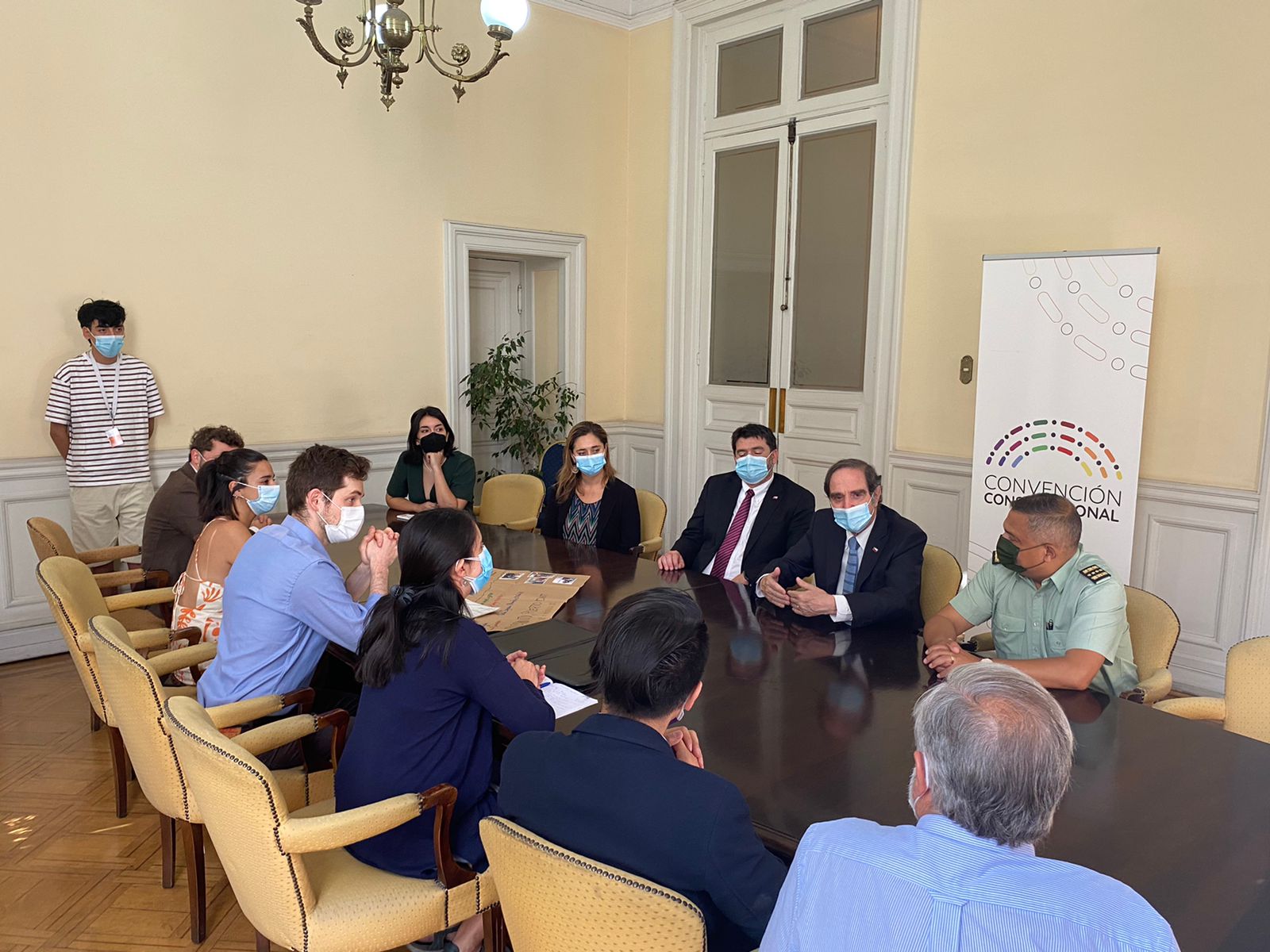 Esta mañana la presidenta María Elisa Quinteros, el vicepresidente Gaspar Domínguez, el vicepresidente adjunto Tomás Laibe se reunieron con el Ministro Hernán Larraín, el subsecretario de Justicia y el director nacional de Gendarmería. El objetivo de la reunión fue firmar un convenio de colaboración que permita facilitar la participación de personas privadas de libertad.