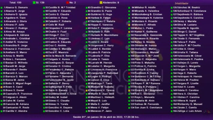 Esta norma alcanzó un 90% de aprobación en el Pleno, apoyo transversal que se tradujo en el voto favorable de convencionales de derecha como Marcela Cubillos (Ind. UDI) y Rugguero Cozzi (RN) y de representantes de colectivos de izquierda como Manuela Royo (MSC) y Manuel Woldarsky (Coordinadora Plurinacional).